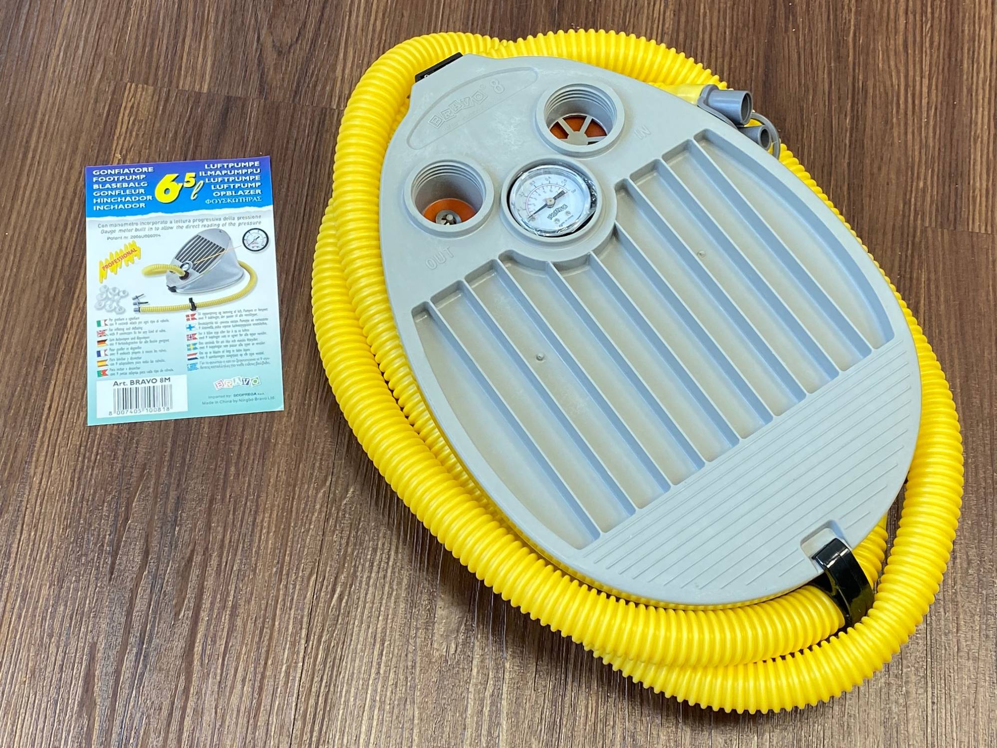 Bravo 7M Fußluftpumpe mit Manometer aus der Professional-Serie der Firma Scoprega.