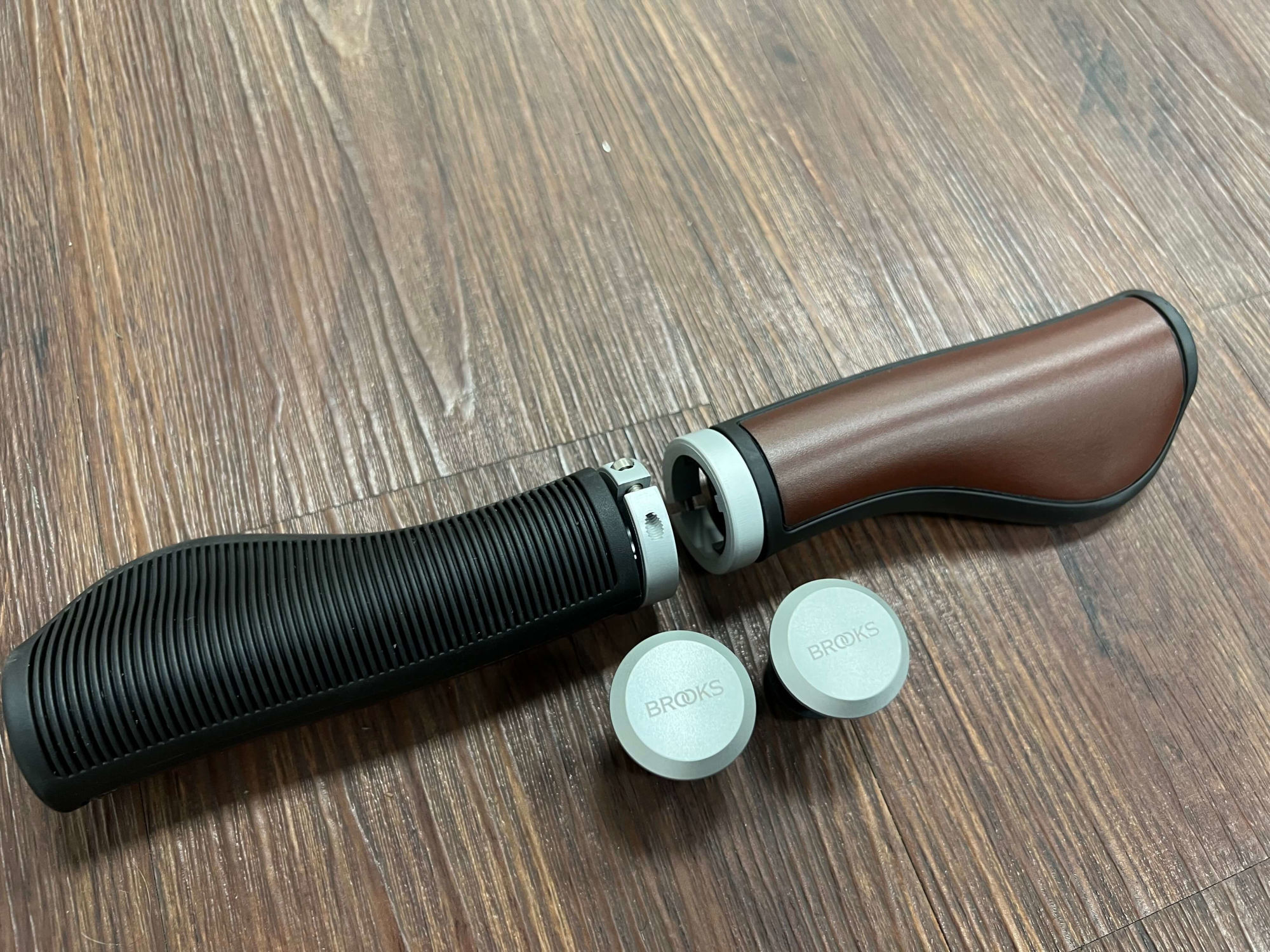 Hier die neue Version der Brooks Ledergriffe. Die Griffe sind in der Form gleichgeblieben , werden jetzt aber von innen verschraubt. Die Lederfläche ist jetzt nur noch oben am Griff. Die Unterseite ist jetzt wie die bekannten Brooks Ergonomic Griffe auch mit geriffeltem Gummi. Angenehm von der Haptik und durch weniger Leder auch 15 Euro günstiger als der Vorgänger.