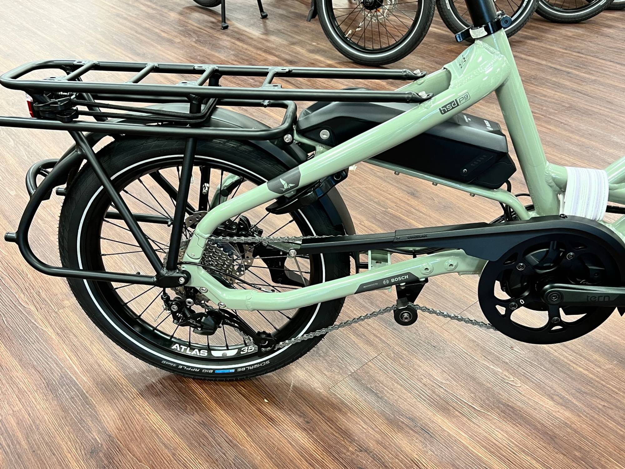 Trotz seiner geringen Größe ist das HSD ein mittelgroßes Lastenfahrrad mit einer gewissen Tragfähigkeit. Mit einem maximalen zulässigen Gesamtgewicht von 170 kg und einem XL-großen Atlas H-Gepäckträger können Sie Lebensmittel im Wert von einer Woche oder Campingausrüstung für das Wochenende mitnehmen. Es verfügt sogar über eine spezielle Anhängerkupplung*, sodass das Hinzufügen zusätzlicher Ladung ein Kinderspiel ist.