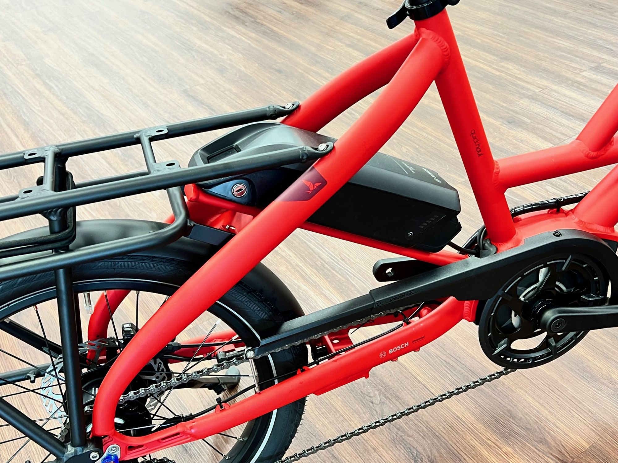 Das Tern Quick Haul P5i ist in der Nabenschaltungsausstattung mit der 5-Gang Nexus von Shimano ausgestattet und wird von dem Bosch Performance Line angetrieben. Zusammen mit dem 500Wh Powerpack Rahmenakku ein ideales Team für alles was so im Alltag bewältigt werden muss.