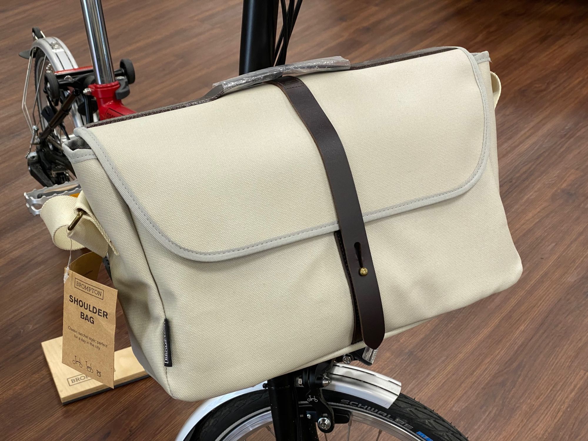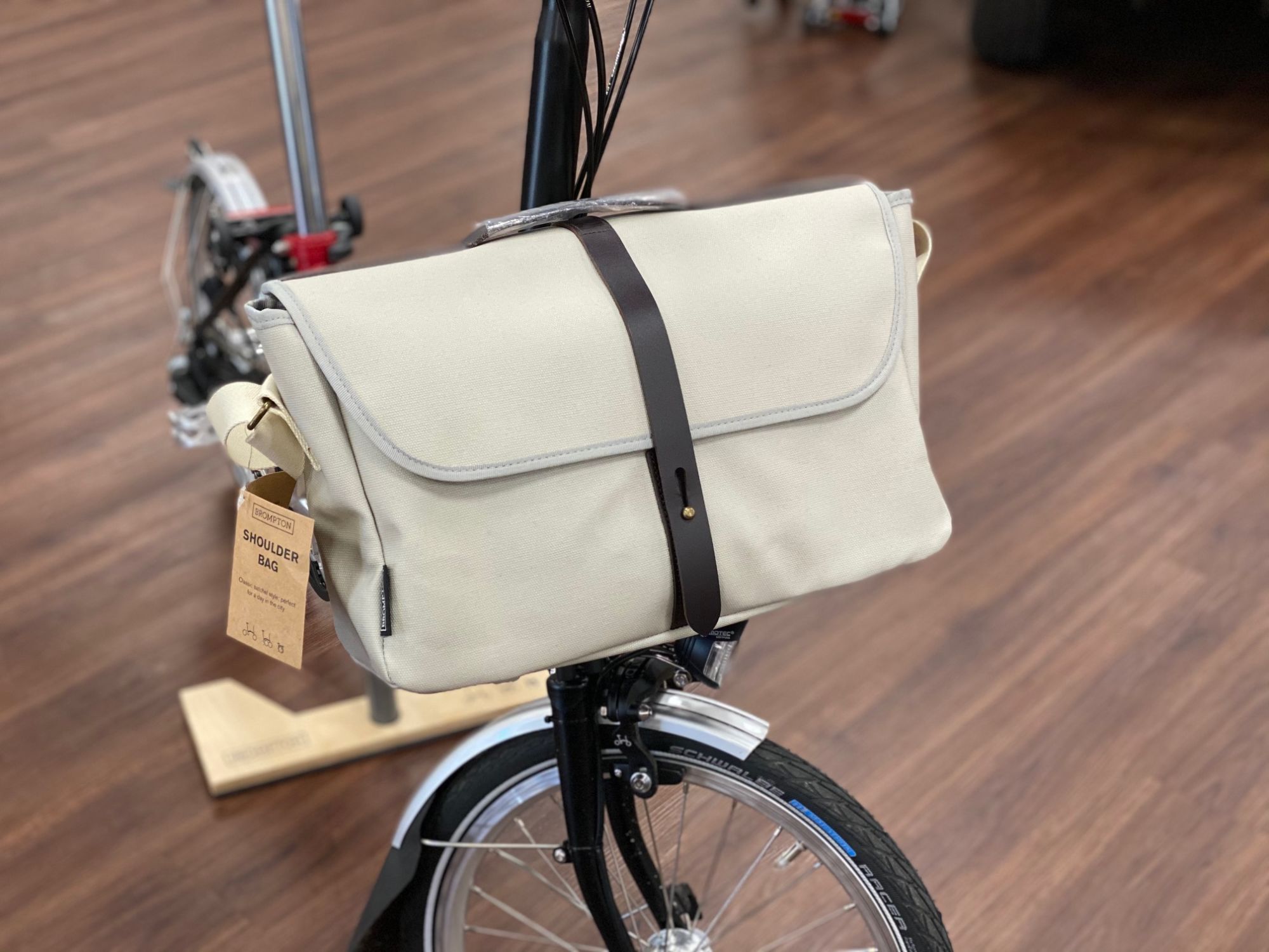 Die neue Schultertasche im grauen, oder gelben Design hat einen Verschlussriemen aus Leder und einen multifunktionalen Schultergurt. Er erleichtert die Nutzung der Tasche am Rad und unterstützt gleichzeitig den Tragekomfort.