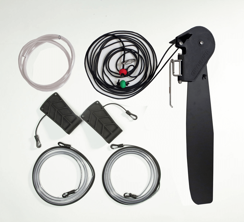Die Steuervorrichtung erleichtert das Kurs halten bei Seitenwind, Wellen und Strömungen. Alleine- und vor allem auch zu zweit ist die Steuervorrichtung besonders empfehlenswert. Mit den Fußpedalen wird einfach die Richtung gesteuert. Die Paddelkraft kann zu 100% in Vortrieb umgesetzt werden, anstatt koordiniert mit den Doppelpaddeln steuern zu müssen.