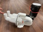 Die Fäkalienpumpe M ist eine selbstansaugende Membranpumpe. Die Pumpe arbeitet ohne Zerhacker. Durch die eingebauten Lippenventile können auch größere Feststoffteile ohne Beschädigung der Pumpe gefördert werden. Durch die selbstschließenden Ventile ist die Pumpenanlage unempfindlich, d.h. sie kann in jeder Lage stehend, hängend oder seitlich an der Wand montiert werden. Der Ansaug- und Abgangskrümmer ist drehbar. Dies ist für eine bessere Anschlussmöglichkeit der Saug- und Druckschläuche unbedingt notwendig. Der Saug- und Druckanschluss geht normalerweise von links nach rechts. Er kann jedoch ganz einfach geändert werden, sollte einmal die Saugrichtung von rechts nach links oder von unten nach oben erfolgen. Alle wasserführenden Teile sind wahlweise aus Rotguss oder Alu gefertigt. Die Pumpe ist mit 12 V oder 24 V Motor lieferbar. Die Betriebsdauer beträgt max. 1 - 2 Stunden. Beachten Sie: Der Leitungsquerschnitt darf an keiner Stelle weniger als 1 1/2‘‘(38 mm) sein. Ansonsten kann die angegebene Pumpenleistung nicht erreicht werden.